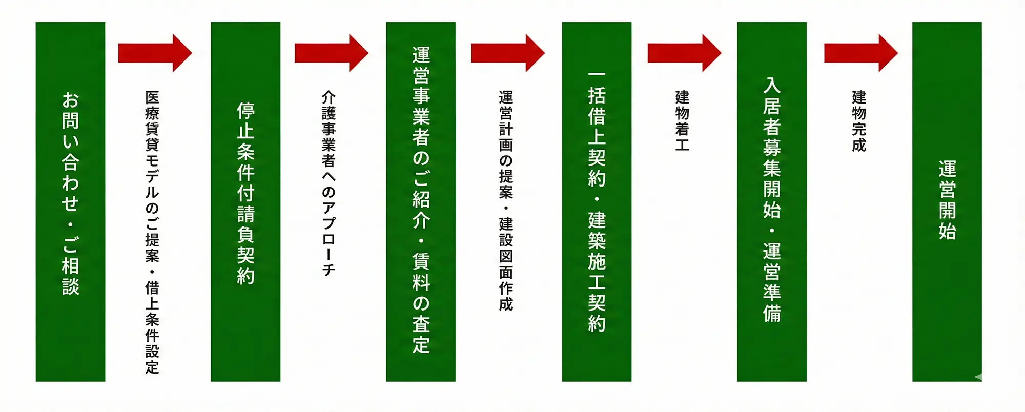 一定期間の中で一括借り上げの希望条件にマッチした福祉事業者様を誘致いたします。