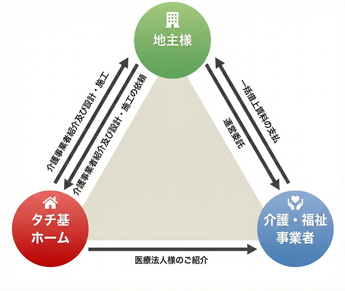 タチ基ホームは事業意欲が高い優良な介護事業者を地主様にご紹介いたします。